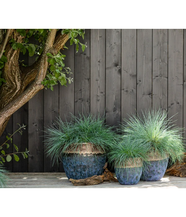 Dehner Keramik-Topf Mystras, Rund, Blau-braun