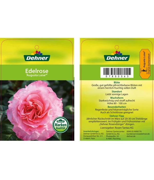 Eine herausragende Edelrosensorte mit riesigen Blüten, deren Farbe von rosé bis apricot changiert, mit einem kapriziösen Anflug von rot und gelb. Eine robuste, wuchsstarke Sorte, deren elegante Duftnote weltweit bekannt ist.