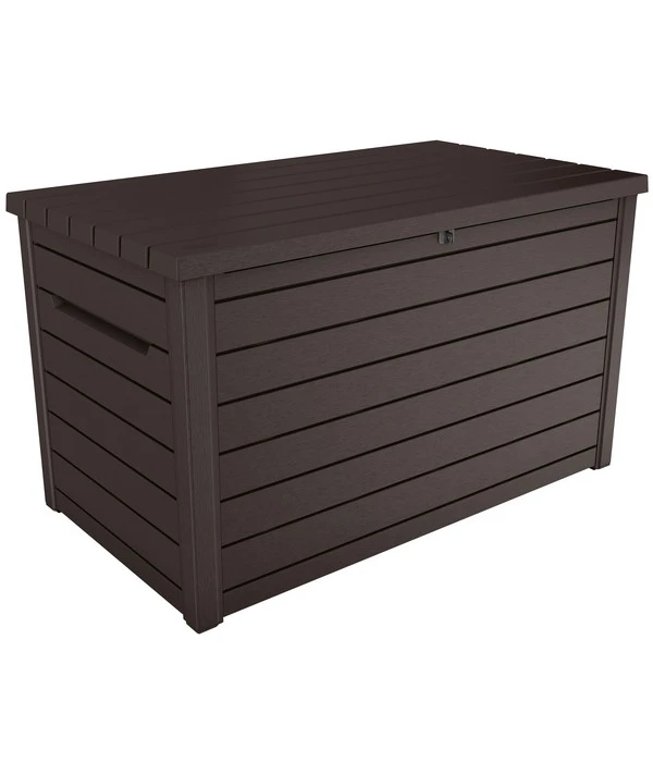 Wenn die ganze Familie im Garten aktiv ist, dann kommen unterschiedliche Spielsachen, Geräte, Utensilien und vieles mehr zum Einsatz. Dank der Keter Auflagenbox Ontario haben Sie immer einen optimalen Ort zur Verfügung, an dem sich alles ganz leicht verstauen lässt. Tragen Sie somit zur Sicherheit, Ordnung und Übersicht in Ihrem Außenbereich bei und profitieren Sie zugleich davon, alle wichtigen Dinge griffbereit zu haben. Natürlich profitieren Sie ebenso von einem modernen, dunklen Design und sorgen so für einen zeitgemäßen und geschmackvollen Akzent an vielen Orten.