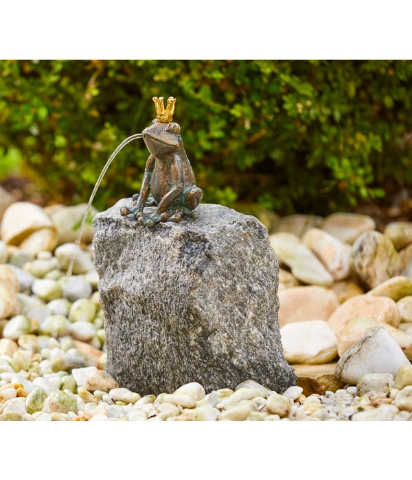 Der Bronze-Froschkönig von Rottenecker wurde aus wetter- und frostbeständigem Bronzekunstguss gefertigt. Sie können die schöne Figur also das ganze Jahr über im Freien stehen lassen und sich an seiner Wirkung begeistern. Seine Qualität Made in Germany sieht man sofort anhand der feingearbeiteten Details. Die Augen, die Krone sowie seine Zehen werden wunderschön dargestellt. Bitte beachten Sie, dass die Lieferung ohne die Granitsäule erfolgt. So sind Sie aber sehr flexibel bei der Platzierung des niedlichen Frosches in Ihrem Garten. Sichern Sie sich den wasserspeienden Gesellen und ordern Sie den Bronze-Froschkönig aus dem Hause Rottenecker jetzt gleich!
