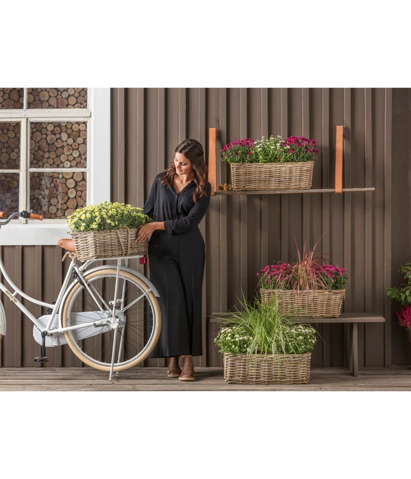 Pflanzen sind das A und O in jedem Garten und werten auch den Balkon und die Terrasse optisch auf. Noch attraktiver wird die Blumenpracht aber mit den passenden Gefäßen wie diesem Rattan-Pflanzkasten. Lassen auch Sie sich von dem zeitlos schönen Geflecht begeistern, das wunderbar zum angesagten Landhaus-Stil passt und ein natürliches Flair verbreitet! Ob im Frühling mit Narzissen, Traubenhyazinthen oder Tulpen bestückt oder im Herbst mit Erika bepflanzt, dieser Rattan-Korb begleitet Sie durch das ganze Jahr. Auch Ihre Kräutersammlung kommt in dem Blumenkorb hervorragend zur Geltung. Versuchen Sie es doch zum Beispiel mit Basilikum, Schnittlauch und Petersilie.